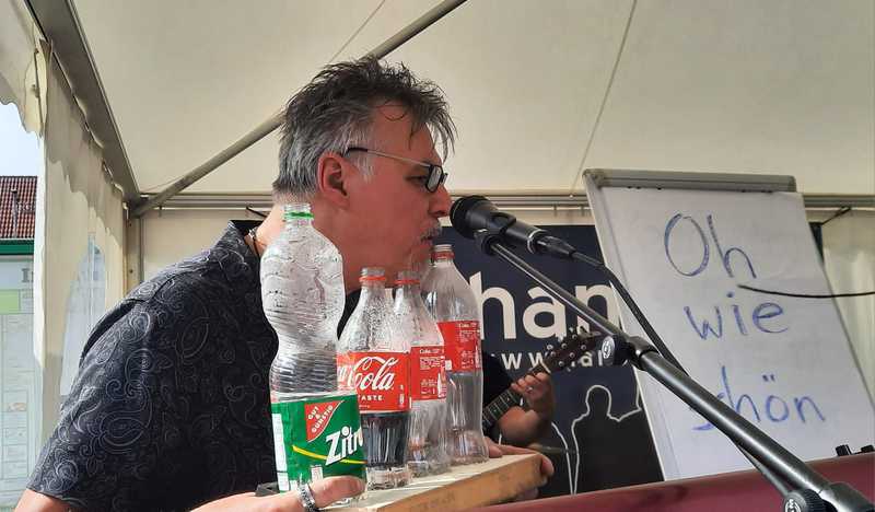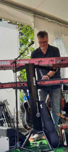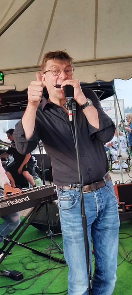 dem Abschied von "Keimzeit" widmet sich der charismatische Sänger und Gitarrist seiner Solokarriere und ist oft mit der kleinsten Bigband der Welt "Boogielicious" auf Tour .